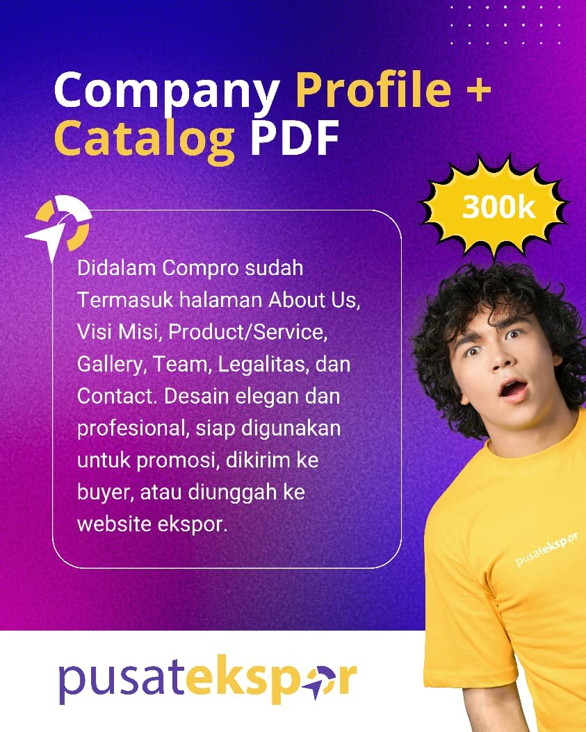 Media promosi profesional untuk kebutuhan ekspor dan presentasi buyer.